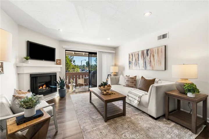 Beautiful Move-In Ready Kellogg Terrace Condo! Discover this charming 2-bedroom, 2-bath upper-level condo offering a spacious open floor plan in the highly desirable Kellogg Terrace community. The bright and inviting kitchen features white cabinetry, granite countertops, and a seamless flow into the dining and living areas. Enjoy stylish vinyl wood-like flooring, neutral paint, and a cozy fireplace that creates a warm and welcoming ambiance. Both bathrooms are tastefully updated with granite countertops, and the home includes a private laundry room conveniently located on the balcony. Relax on your outdoor space or take advantage of the community’s fantastic amenities, including a sparkling pool, spa, and lush grassy areas. Perfectly situated close to freeways, shopping, and restaurants, this condo offers comfort, convenience, and move-in readiness. Don’t miss this wonderful opportunity!