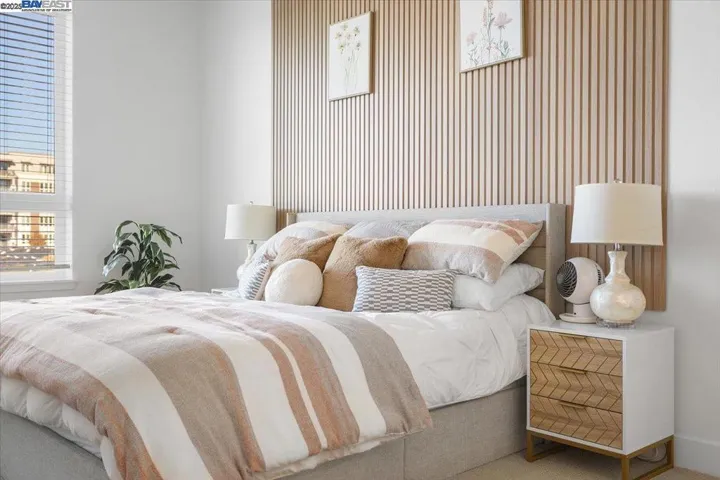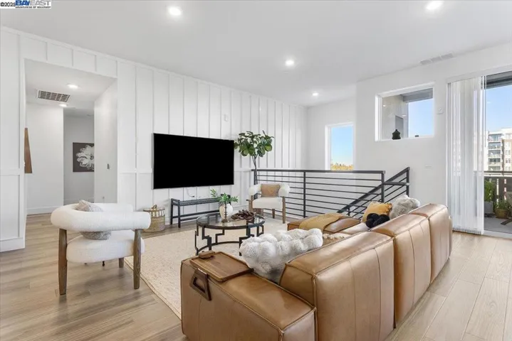 DON’T MISS THIS. A two-story luxury condo that elevates modern living in Fremont. This property features a bright open concept layout, private street-level entry and a secured attached two-car garage with EV charging capabilities, blending high-end design with everyday convenience. The ground floor includes a grand foyer and a private ensuite, offering comfort and privacy on its own level. Upstairs, an impressive open-concept kitchen, living, and dining area serves as the heart of the home, with expansive sliding doors that open to a private wraparound balcony for seamless indoor-outdoor living. A bright hallway leads to two additional bedrooms and two full bathrooms, including a spacious primary ensuite with a walk-in closet and dual vanity. Residents of this highly desirable community enjoy access to resort-style amenities including a clubhouse, fitness center, pool, spa, and beautifully maintained outdoor spaces. Situated near top-rated schools, major commuting routes, BART, and Fremont’s vibrant shopping and dining corridors, this home offers convenience without sacrificing luxury. This is a rare opportunity to own a home that offers luxury, space, and modern functionality.
