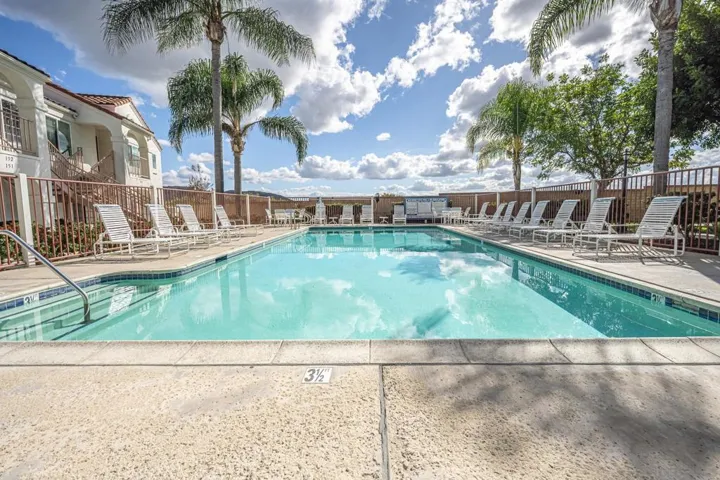 Welcome home to your private retreat! This meticulously maintained single-level, ground-floor condo offers 2 spacious bedrooms and 2 full bathrooms, each with generous closet space. The inviting layout flows seamlessly to a finished private patio — perfect for morning coffee or evening relaxation. Enjoy modern comforts including engineered wood floors, newer HVAC, a cozy gas fireplace, in-unit laundry, and a hot water heater with extended warranty. The community enhances your lifestyle with three sparkling pools, soothing spas, an exercise room with sauna, and lush landscaped walking paths. Located in the award-winning Poway School District, this VA and FHA approved complex provides covered parking plus ample guest spaces. With easy access to shopping, dining, parks, and major highways, this condo is move-in ready and waiting for you! This is the one! Single-level, ground-floor condo with 2 bedrooms, 2 baths, engineered wood floors, newer HVAC, cozy fireplace, and in-unit laundry. Enjoy a private patio plus resort-style amenities: 3 pools, spas, fitness center with sauna, and lush walking paths. Covered parking, VA/FHA approval, award-winning Poway School District, and adjacent to Sun Ridge Vista Park with playgrounds, courts, and trails. Comfort and convenience in Rancho Peñasquitos!