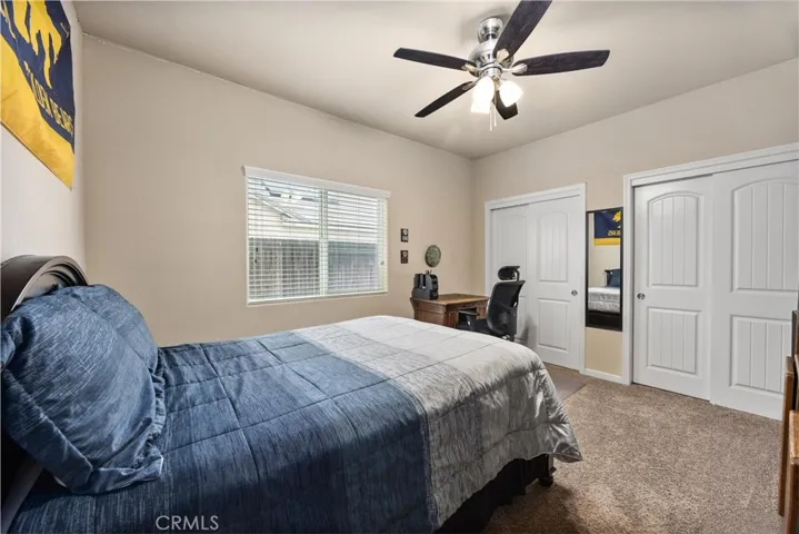 Welcome to this beautifully maintained home offering exceptional curb appeal, gated RV parking, and an expansive 3-car garage. Move-in ready, it features a neutral color palette and large tile in high-traffic areas for practicality. At the front of the home, a spacious flex room offers versatile use—ideal for a home office or additional living area. The kitchen features granite countertops and bar-top seating flowing seamlessly into the adjacent great room for comfortable gatherings or relaxing at home. The private primary suite provides a soaking tub, walk-in shower, dual sinks, and generous storage. Step outside to a covered patio and dual ceiling fans, a perfect setting for outdoor dining, while the thoughtfully landscaped lawn, rock-lined borders, and retaining wall add beauty and function. The finished garage has the added perk of a dedicated water-pressure system connected to a 100-ft hose on a reel—ideal for washing cars, garage door, or driveway & side yard.
