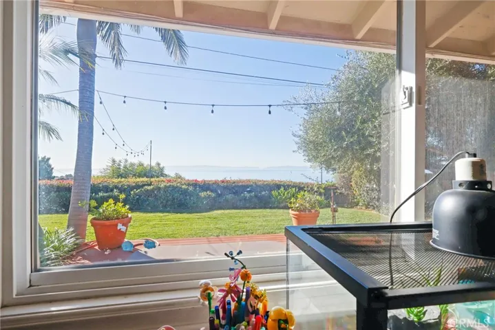 Down the hallway are three well-appointed bedrooms, two of which enjoy their own ocean views right from the windows. At the end of the hall, the primary suite feels like a private retreat, complete with a sliding glass door framing the coastline and providing direct access to the backyard.