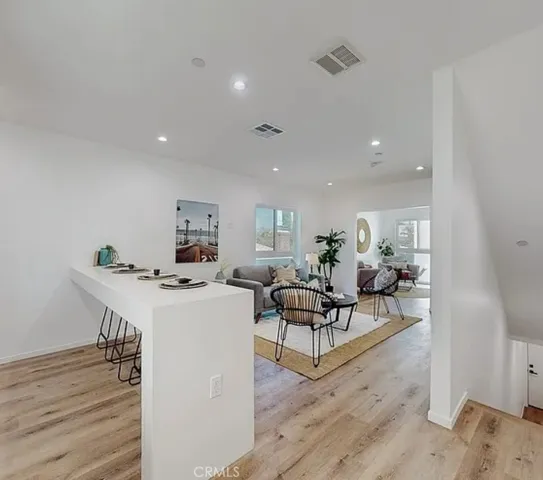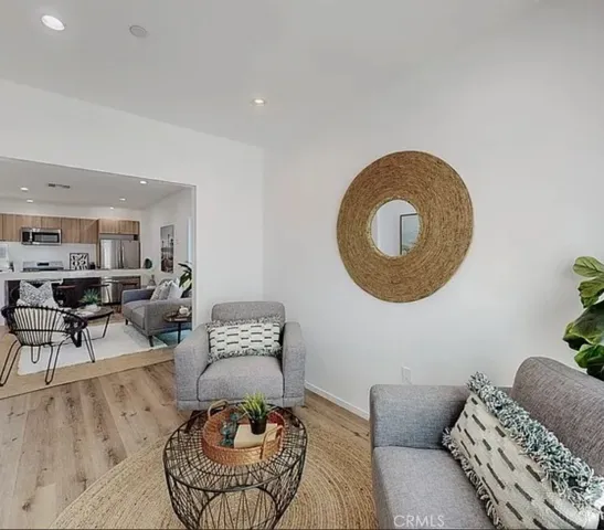 Offering one month free on a signed 13 month lease. Come see this breathtaking 2022 Construction! Live in this stunning, contemporary townhouse located in the high-demand area of NoHo. One of five townhouse-style homes, this unit features 3 stories, with a large private rooftop deck with epic views. The first level features a private patio entrance as well as a private garage with laundry area equipped with Whirlpool washer/dryer and optional EV charging access. The second level features a large living/dining open plan with custom kitchen boasting quartz-topped dining peninsula and countertops. New stainless steel appliances including a gas stove with range, French door refrigerator, microwave, dishwasher. Second level also features a “flex-room” perfect for a third bedroom, den, office or gym. On the third level you will find 2 ensuite bedrooms as well as access to the large rooftop deck. Additional features include brand new wide-plank wood-like luxury flooring throughout, tankless water heater, central HVAC, high ceilings, double-pane energy efficient windows, built-in shelves and custom cabinetry! Entire property is gated with remote-controlled access, and surveillance cameras. Enjoy the benefit of this charming residential pocket of NoHo while being minutes from an unlimited supply of bars, restaurants, shopping, Noho Arts District, Noho West Shopping Center, Burbank Airport, theaters, and dance studios. Just 5 miles to downtown Weho, DTLA and Hollywood, with easy access to the 134, 170 and 101 freeways. Don’t miss seeing this custom home, representing urban townhome living at its finest.