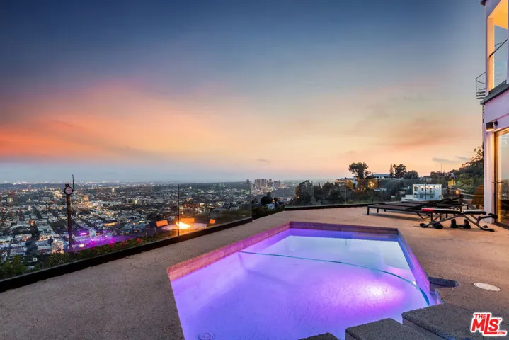 Stunning Architectural Estate in the Hollywood Hills with Spectacular Views fromDowntown to the Ocean! Walls of glass slide open from main living area to pool, spa, fire-pit which feels more like an outdoor living room so you can enjoy the ultimate California lifestyle. Open kitchen features high end appliances andmodern designer touches. Master bedroom is straight out of a movie set with afully open Italian style bathroom and jetliner views that will start any morning andend any night in style! Rooftop deck, putting green and hiking trail on theproperty that leads to private promontory point. Direct access 2 car garage with driveway for many more cars. AVAILABLE FOR SHORT TERM AND MONTHLY – PLEASE INQUIRE FOR RATES.