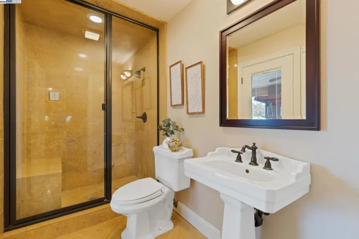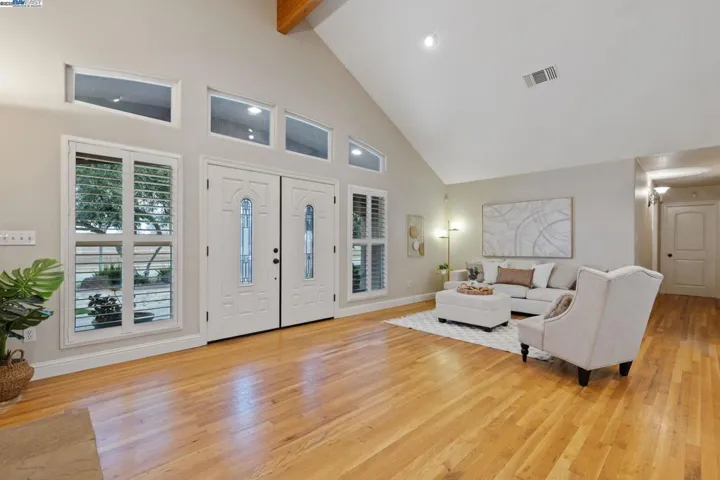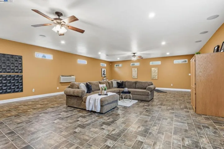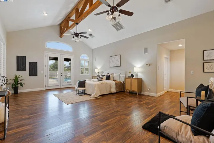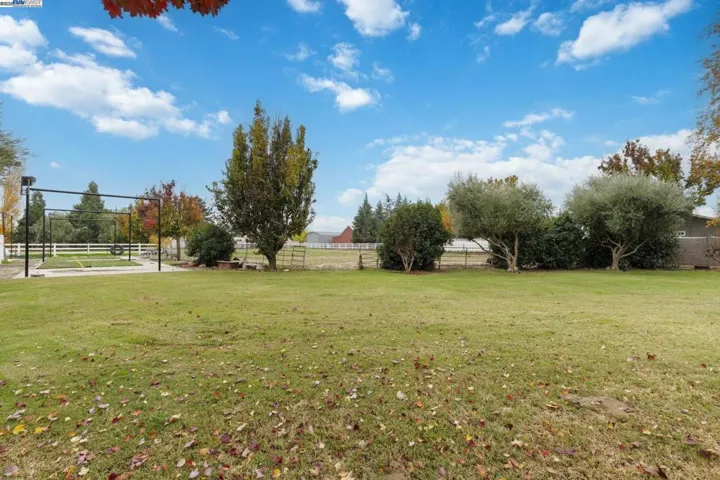 Discover a rare luxury estate on 3.31 private acres with a fully remodeled 4 bed 3 bath single story home, a 2 bed 1 bath ADU, a large flex building for a game room office or gym and a 4 car garage. This property was completely transformed from a 3 bedroom 1 bath 1100 sq ft home into the expansive estate it is today. The main home features vaulted beam ceilings, hardwood and slate floors, French doors, and a chefs kitchen with a large island, dual convection ovens, smooth cooktop, slate flooring, and wine fridge. The primary suite offers a rainfall double shower and walk in closets, plus a second suite and walk in laundry room. The outdoor space feels like a private resort with a 9 ft deep ocean blue pool, rock waterfall, elevated hot tub, outdoor BBQ kitchen, and surround sound. The acreage includes fenced livestock pastures, flood irrigation, roping arena, vinyl fencing, dog run, gardening area, and mature redwood and olive trees. Additional features include gated entrance, keypad access, security cameras, RV hookups with dump station, and stamped concrete. ADU offers its own kitchen, farm sink, laundry hookups, and HVAC, ideal for guests or multi generational living. A rare private gated estate offering luxury, acreage, ADU, RV parking, and resort style living in one property.