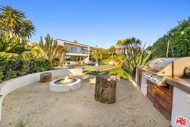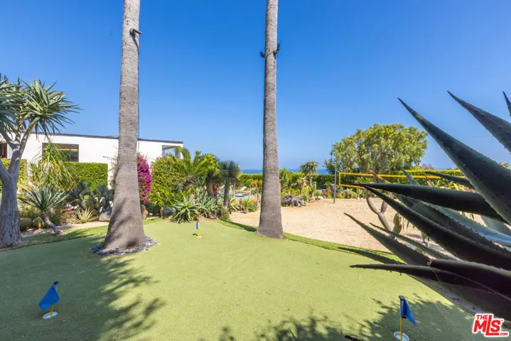 Wide open ocean views, a huge lush yard, and a resort-style saltwater pool welcome you the moment you arrive. This is 24/7 Malibu vacation living. Step into the soaring two-story living room and it is all about light and volume. Walls of glass slide open to a spacious patio lounge and pool, creating effortless indoor-outdoor flow for quiet mornings, big nights, and everything in between. Upstairs, the dramatic second-story dining room overlooks the living room and straight out to the ocean, flowing seamlessly to a bright, dine-in kitchen with stainless steel appliances and modern cabinetry. With views like this, every meal gets an upgrade! Down the hall, the primary suite feels like checking into your own private hotel. A sweeping ocean-view balcony sets the stage for sunrise coffee and golden-hour drinks while the spa-like bathroom invites long resets at the end of the day. An open-air corner is perfect for meditation, stretching, or just breathing in the ocean air. Additional guest bedrooms give everyone space to unwind. A flexible bonus room can be your game room, personal gym, or whatever your lifestyle calls for. Outside, the property turns into a full-on playground. Fire up the outdoor kitchen and grill. Gather at the fire pit lounge as the sky turns pink. Challenge friends on the putting green or hit the sand volleyball court to sharpen your game without even leaving home. All of this sits at the end of a quiet street, secured behind gates and lush hedging for true celebrity-level privacy, yet only a quick drive to Malibu’s beaches, surf, and coastal hotspots. Come experience coastal living at its finest, where privacy, modern style, and high-energy Malibu living all come together.