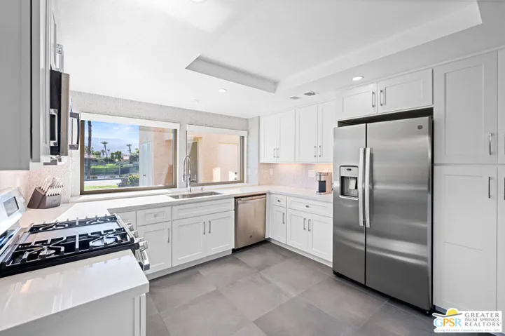 New listing: South-facing, completely updated condo in Casablanca, Palm Desert. Once inside, you are greeted by a light, bright contemporary space with excellent mountain views. The open floor plan maximizes flow, enabling seamless entertaining and enjoyment across all living spaces. The updated kitchen includes custom cabinetry, quartz slab countertops, and stainless steel appliances. The vaulted ceiling living room is highlighted by an oversized tiled fireplace and windows/doors opening onto a private wraparound patio. The primary suite features a soaking tub and a custom-tiled shower enclosure, all in a beautiful, sleek room reminiscent of a spa. Casablanca is ideally situated in Palm Desert, close to shopping, entertainment, and dining. The home is being sold FURNISHED per the seller’s inventory. Why aren’t you living here yet?
