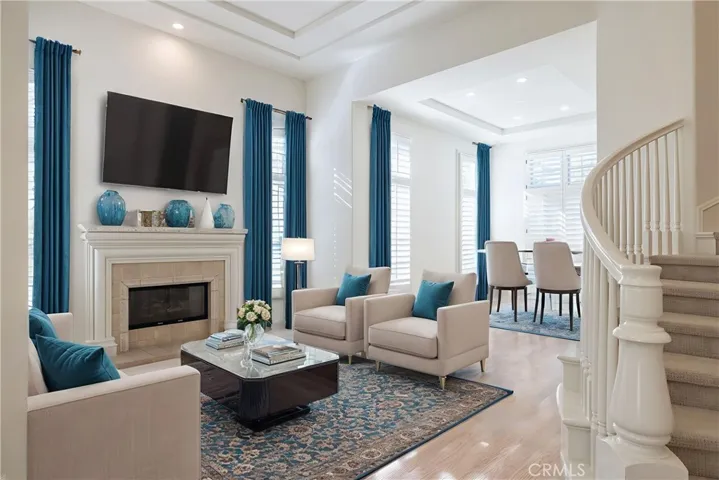 Discover this charming home nestled in the highly sought-after, prestigious One Ford Road community. This residence offers an ideal blend of formal elegance and relaxed, open-concept design, where the formal living room flows seamlessly into the dining area, gourmet kitchen, and family room, all filled with an abundance of natural light. The main level features a cozy gas fireplace in the living room and opens directly to a fully renovated outdoor living space, perfect for entertaining with a gas fire pit and a custom outdoor cooking area featuring a built-in barbecue, mini-fridge, wine fridge, and custom bar area. This desirable Stonybrook Model 3 floor plan has five bedrooms, including a flexible guest suite. The primary bedroom is a true retreat on the second level, a private gas fireplace, and a balcony to enjoy the ocean breeze, alongside three additional bedrooms (configured as a Jack & Jill bedroom/bathroom). As a resident, you will enjoy access to the unparalleled One Ford Road amenities, including a Clubhouse, fitness center, two resort-style pools, playground, putting greens, volleyball and basketball courts, croquet facilities, walking paths & parks. With close proximity to Fashion Island, acclaimed restaurants, and world-famous beaches, call this exceptional home yours today and experience the finest in coastal luxury living.