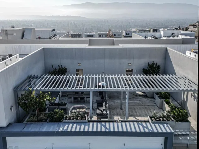 Welcome to an extraordinary penthouse retreat in Communication Hill. This top-floor gem offers an airy, light-filled living experience with soaring ceilings and expansive stacked windows that brighten the entire space. As one of only two homes on the fourth floor, it offers direct access to the Sky View Terrace, a beautifully designed shared space with seating areas, a BBQ, and panoramic foothill views. Inside, the modern kitchen features quartz countertops, stainless steel appliances, and a gas cooktop. The private balcony is perfect for enjoying the sunrise over the foothills. The spacious primary bedroom includes a walk-in closet and captures the same stunning views. Built in 2020, the home includes luxury vinyl plank flooring, a formal dining area, breakfast bar, indoor laundry, and a two-car tandem garage with extra storage. William Manly Park and scenic trails are in close proximity, making this an exceptional place to call home.