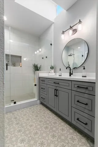 The primary suite is a true retreat, featuring a luxuriously remodeled bathroom and a generous walk-in closet designed for both comfort and organization. Upstairs laundry adds convenience, while the private backyard offers a serene setting ideal for entertaining or quiet enjoyment.