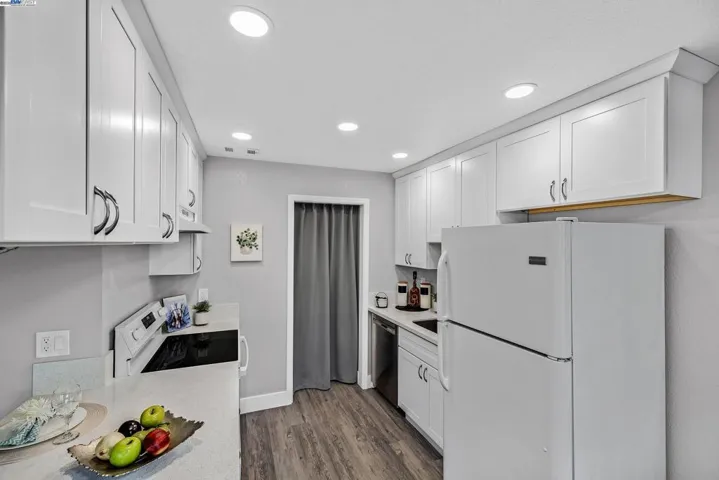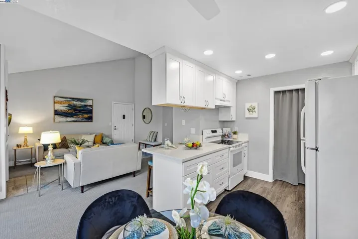 Enjoy both class and convenience at this Pennsylvania Common home. The soaring vaulted ceilings really open up the spacious rooms. The cozy fireplace will catch your eye in the living room. The kitchen has been upgrade with white shaker cabinets, quartz counter tops, vinyl plank flooring, and the stove and dishwasher are just a year young. This home has been freshly painted and the carpet was installed two years ago. There is forced central air for heat and an air-conditioning unit when needed for those summertime moments. Otherwise the ceiling fan and multiple dual pane windows allow for a potential cross breeze. The primary suite shines with a window seat and mirrored closet doors. The secondary bedroom also has a window seat and is quite gracious in size. The 6-panel doors complete the polished look. There is even an inside area for laundry. The gated courtyard design of the complex allows for a true community atmosphere. The balcony overlooks the refreshing pool next to the common lawn area. You have your own enclosed garage plus one dedicated parking space. There is street parking for guests. Centrally located to schools, shopping, hospitals and various commute corridors. BART, Trader Joes, Whole Foods, Raley’s, Kaiser, Washington Hospital and Lake Elizabeth are all nearby.