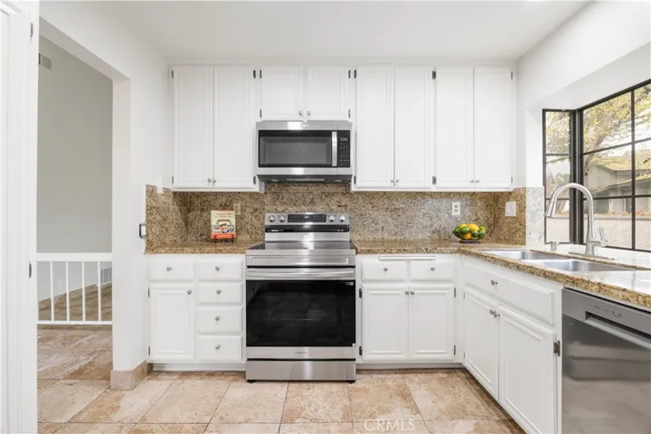 Charming and light-filled two bedroom, two bathroom home in desirable Turtle Rock Meadows with soaring ceilings and peaceful views of surrounding trees from the patio, living room, and kitchen. The interior has been freshly painted and features new bathroom vanities with quartz counters, along with luxury vinyl plank flooring on the stairs and in both bedrooms and bathrooms. The kitchen, highlighted by a picturesque bay window and stainless steel appliances, overlooks the private patio, and the spacious 2-car direct-access garage includes convenient washer/dryer hookups. Community amenities include pools, spas, and scenic walking areas. Near parks, trails, tennis courts and award-winning schools, with beaches, shopping, golf, and John Wayne Airport just minutes away.