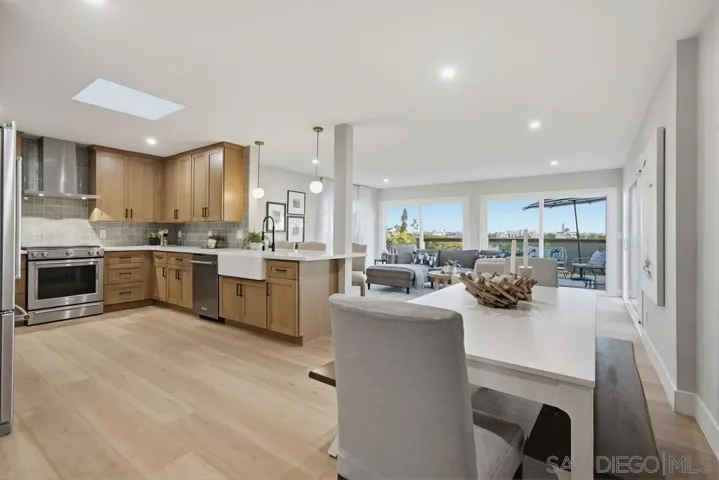 Back on Market – Buyer did not perform. Perched along a quiet, coveted street in prestigious Bay Park, enjoy commanding views of the breathtaking canyon, University of San Diego, bay, ocean, and Point Loma from an elevated, oversized 1/4-acre estate. This exquisitely reimagined residence has been curated from top to bottom, blending refined craftsmanship with timeless sophistication. Every detail has been elevated, including a new roof, dual-pane windows and sliders, new air conditioning system, wide-plank flooring, an upgraded foundation, and a new sewer lateral. The sun-drenched, designer kitchen is a true centerpiece, showcasing custom cabinetry, quartz countertops, bespoke tilework, and sleek, high-end appliances, all flowing seamlessly into a dramatic, view-framed family room overlooking your backyard paradise. The outdoor grounds are equally refined, featuring professionally designed drought-tolerant landscaping, a newly constructed view deck, and an elegant pergola—ideal for private relaxation or upscale entertaining against a backdrop of sweeping coastal vistas. Both bathrooms have been transformed into spa-level retreats with custom designer tile, premium fixtures, and elevated finishes throughout. A rare Bay Park offering, combining privacy, panoramic scenery, and modern luxury on an expansive lot, just moments from beaches, fine dining, and downtown San Diego.