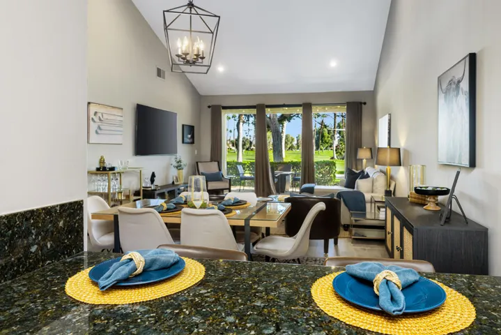 You won’t want to miss this beautifully updated 2-bedroom, 2-bath condo in Monterey Country Club with spectacular golf course and water view. New recessed lighting throughout. New paint, new kitchen sink, new toilets, new mirrors, new fixtures. Stainless steel appliances, granite counters, and new upgraded tile flooring. Private front courtyard with low-maintenance landscaping. Country Club features private golf course, tennis, pickleball, gym, and clubhouse. SHORT-TERM rentals allowed–making this the perfect full-time home, seasonal retreat, or income-producing property! Monterey Country Club offers: 27 holes of golf, 13 tennis courts, 20 pickleball courts, bocce ball courts, 37 pools & spas, and clubhouse & fitness center. All just minutes from El Paseo shopping, fine dining, hiking, Palm Springs Airport, and more. Don’t miss this rare opportunity–schedule your private showing.