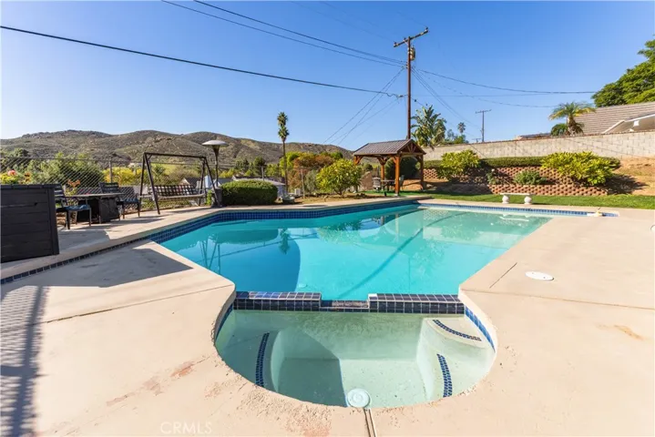 The beautifully maintained backyard offers an exceptional outdoor living experience that is expansive and private. At the heart of the space is a sparkling pool and spa, perfect for summer days and weekend gatherings. The yard opens to sweeping hill views, providing a tranquil backdrop and unmatched sense of openness. As the sun sets, the sky fills with stunning color, creating a peaceful and memorable evening atmosphere. A newly constructed patio, featuring two ceiling fans, offers a cool, shaded retreat ideal for dining, entertaining, or simply relaxing outdoors.