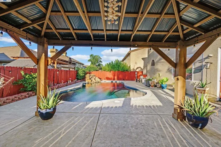 5-bedroom, 3.5-bath home offering over 3,000 sq ft of flexible living space designed for comfort and long-term use. The layout provides multiple living and dining areas with a clear separation between gathering spaces and private rooms. Upstairs features a spacious primary suite and well-sized secondary bedrooms, providing space to grow, work, or host guests without compromise. The kitchen connects seamlessly to the main living areas and includes granite countertops, stainless steel appliances, and a large island for everyday use. Major upgrades already in place include a custom backyard pool with a waterfall feature, solar panels, and a three-car garage, delivering convenience and efficiency without future projects.