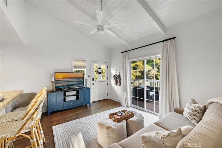 Available June-July 15 2026! Experience the quintessential Laguna Beach lifestyle in this stunningly remodeled, fully furnished 1-bedroom, 1-bathroom retreat. Tucked away on a quiet street in lower Temple Hills, this light-filled unit features a perfect blend of coastal tranquility and modern comfort making it the ideal sanctuary for your stay. Enter through the charming Dutch door to find rich hardwood-style flooring, a cozy living room with a large skylight that floods the space with natural light and sliding glass doors that open to a private balcony surrounded by lush greenery—perfect for enjoying the ocean breeze. The gourmet kitchen is fully equipped for the home chef, featuring warm wood cabinetry, granite countertops, stainless steel appliances, and a breakfast bar with woven bistro seating. Retreat to the spacious bedroom which continues the airy feel with high ceilings and a ceiling fan. This relaxing haven is tastefully decorated with a tropical botanical accent wall, a plush blue velvet upholstered bed, and a chic sitting bench. The bathroom offers a spa-like atmosphere with floor-to-ceiling travertine tile and a walk-in shower. With mirrored wardrobe doors, ample storage, and laundry access, this beautiful unit offers everything you need to live like a local in one of Southern California’s most desirable coastal enclaves.