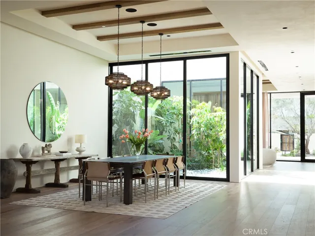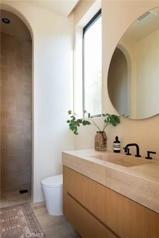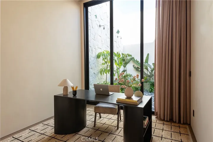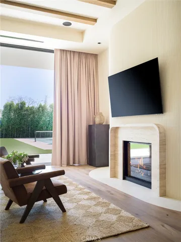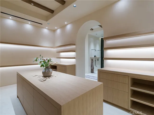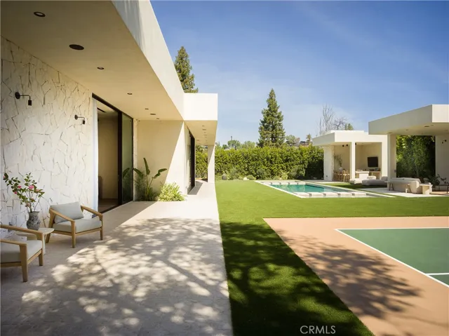 Unveiled as a triumph of architectural ingenuity, 5824 Manton Avenue is a beacon of organic modern design in Woodland Hills coveted Walnut Acres enclave—a masterpiece poised to grace Architectural Digest. Spanning 7,470 square feet on a single level, this gated estate features five bedrooms, six spa-inspired bathrooms, and a dedicated office, all on a 22,580-square-foot lot. Designed for visionaries, this gated sanctuary redefines luxury living with innovation and elegance. Inside, wellness and luxury merge in a layout built for serenity. Venetian Marmarino plaster walls shimmer with depth, while louvered plaster accents enhance curved fireplaces and a bar, adding sophistication. Organic materials, natural textures, and wood beam ceilings create a calming atmosphere, with 14-foot ceilings and an arched hallway elevating the ambiance. Floor-to-ceiling glass sliding doors blur indoor-outdoor boundaries, flooding the space with light and framing lush greenery. The heart of the home, an entertainer’s dream, centers on a gourmet kitchen with dual islands clad in custom oak cabinetry, arched alcoves, and fluted accents, seamlessly flowing outdoors through glass walls. A butler’s kitchen with a spacious pantry ensures effortless hosting. The living area, anchored by a curved fluted wall and travertine fireplace, creates a cinematic setting. A state-of-the-art movie theater and two atriums elevate the home’s offerings. The primary suite is a sanctuary, featuring two water closets, integrated travertine sinks, and a spa-inspired bathroom with floor-to-ceiling glass framing verdant views. A large walk-in closet with custom white oak cabinetry adds luxury and organization. Each bedroom reflects meticulous attention to detail. Outside, a curated front courtyard with mature olive trees and soft lighting sets a five-star tone. The backyard rivals exclusive resorts, with a 65-foot resort-style pool featuring floating stone water features, two sleek cabanas, and a private pickleball court. Lush landscaping creates a tranquil oasis under the California sun. Home includes energy efficient solar panels, Control4 smart home system manages lighting, temperature, cameras, and music. Located near the Los Angeles Rams’ training facility, and Westfield Topanga Mall. This sanctuary offers seclusion and accessibility. More than a home, 5824 Manton Avenue is a statement—a legacy setting a new standard for luxury living, where every detail tells a story of innovation and beauty.