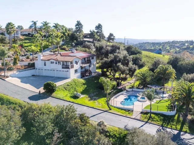 NEW LOWER PRICE!!!! Welcome home to a stunning single-story Mediterranean-style retreat set at the end of a quiet cul-de-sac in the coveted Gird Valley hills of Fallbrook—just minutes from top-rated golf courses and the renowned Monserate Winery. This exceptional property blends luxury, comfort, and versatility, making it an ideal haven for today’s multigenerational lifestyle. The single-story main residence showcases polished travertine floors, 3 spacious bedrooms, and beautifully arranged living spaces including a living room, family room, and formal dining room. The kitchen is thoughtfully designed to capture views from every angle, creating a light-filled culinary space that connects seamlessly to the surrounding hillsides. Expansive balconies off the living room and kitchen elevate daily living with sweeping vistas, while the grand playroom provides an impressive bonus area for recreation or gatherings. The attached 2023 built single-story 2-bedroom ADU features soaring high ceilings, its own private entrance, polished finishes, and a dedicated laundry closet. Ideal for extended family, long-term guests, or rental income, this suite offers both comfort and privacy with harmonious Mediterranean design. Step outside to your own private oasis—a newer, fully fenced pool and spa perfect for relaxing under the California sun. Additional highlights include a PAID OFF SOLAR SYSTEM, a circular driveway, 5-car garage for the car enthusiast, and RV parking, delivering exceptional utility and long-term value. This remarkable estate offers the beauty, space, and lifestyle you’ve been dreaming of—truly a home you deserve.