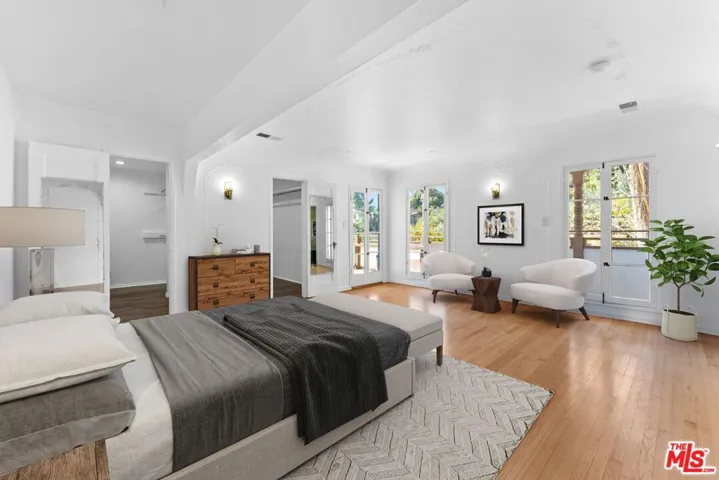 Tucked away in a serene cul-de-sac in the prestigious Hollywood Hills, this magnificent 5-bedroom, 6-bathroom, Spanish-style home seamlessly blends classic charm with modern luxury. Offering space, privacy, and timeless elegance, this beautifully restored residence is just minutes from the Sunset Strip, Runyon Canyon, Hollywood Bowl, and some of LA’s best dining, shopping, and entertainment. Step inside to discover original hardwood floors, vintage tiling, and elegant period details throughout. The bright and expansive living room features soaring ceilings, and French doors that open onto a spacious terrace – ideal for outdoor entertaining or simply enjoying the hillside views.The formal dining room is adorned with a hand-painted fresco and large windows, leading to a stunning, remodeled kitchen outfitted with high-end stainless steel appliances. A charming breakfast room with wraparound windows offers the perfect spot for morning coffee, opening to yet another inviting outdoor space. The luxurious primary suite boasts a walk-in closet and a spectacular vintage-style bathroom complete with original tiles and a whimsical wall mural. Don’t miss the opportunity to make this private retreat home – nestled in the heart of the Hollywood Hills where classic architecture meets contemporary comfort, and the best of Los Angeles is just moments away.