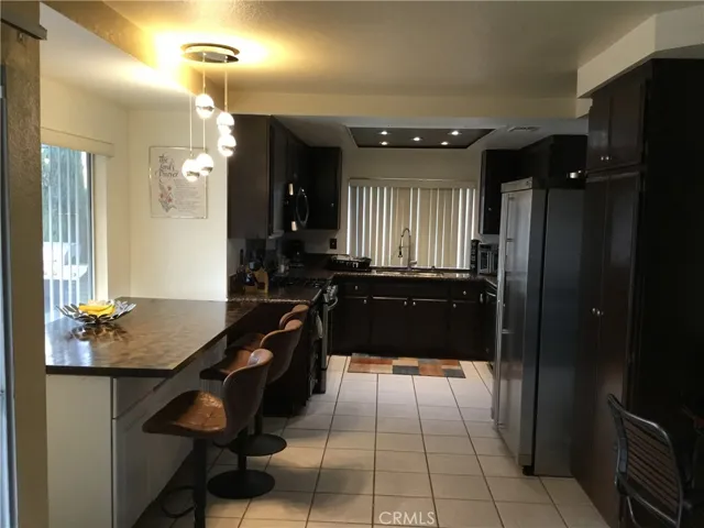 The main level has a fantastic family room with a fireplace and a sliding door that leads directly to the covered patio. sparkling pool, spa, and barbecue area. Gorgeous Granite counter top kitchen with recessed lights and an adjacent breakfast area. Kitchen appliance are included. This well-equipped kitchen has all necessary tools and cabinets.