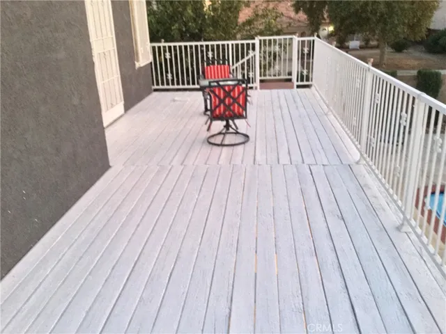 Features upon entry and staircase are an open formal living room and dining room with high vaulted ceilings. One full bedroom and bathroom downstairs. Upstairs provides 2 bedrooms with shared bathroom. The primary bedroom has a walk-in closet, bathroom with dual sink and a door to the balcony that overlook the pool and backyard. There are private stairs from the balcony that lead to the pool area.