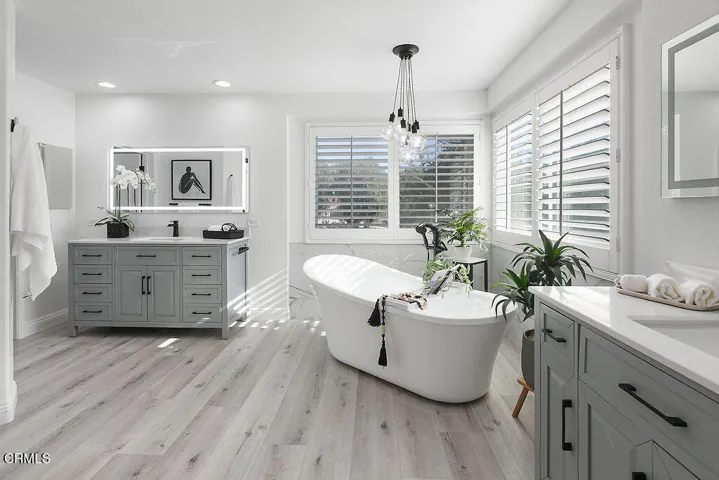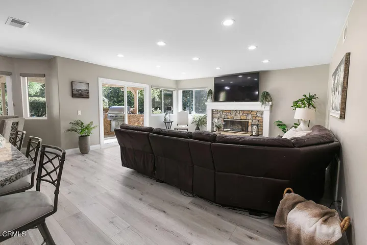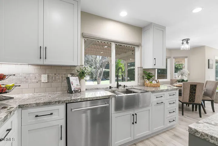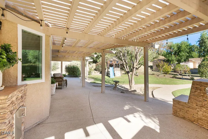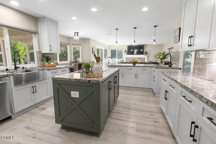 Bridlewood home with Detached Garage; RV Space. Auto Enthusiasts Dream EstateSanta Rosa Valley , Geneva Floor Plan. Cape Cod Elegance with Modern UpgradesNestled in the desirable Bridlewood community of Santa Rosa Valley, this beautifully remodeled panoramic-view estate blends Cape Cod charm with thoughtful modern upgrades. Set on 1.61 acres, this elegant two-story residence offers 3,080 sq. ft. of refined living space, exceptional privacy, and seamless indoor-outdoor living ideal for both relaxation and entertaining.A dramatic two-story foyer welcomes you with soaring ceilings and a striking dramatic staircase, the hallmark of the Geneva floor plan. Upgrades include newer Milgard windows and doors, newer flooring with added sub-flooring upstairs, LED lighting, fresh interior paint, and updated hardware. The living and dining rooms share a double-sided fireplace and capture serene hill views through oversized windows.The remodeled kitchen features custom cabinetry, refaced uppers, stainless appliances, granite counters, farmhouse sink, an island cooktop, breakfast bar, and a sunny nook. It opens to the family room with a second fireplace and direct yard access, creating the perfect great-room environment.A main-floor office/4th bedroom with built-ins sits adjacent to a full remodeled bath. The upgraded laundry room includes granite counters and a stainless sink.Upstairs, the primary suite offers vaulted ceilings, views, a soaking tub, steam shower, dual vanities, and a large walk-in closet. Two additional bedrooms and another remodeled bath complete the upper level.The resort-style grounds include a detached 37′ x 24′ shop plus a 20′ x 13′ storage room provide excellent flexibility.Fruit trees include lemon, lime, orange, guava, pomegranate, peach, plum, and nectarine. Six mature oaks, shade trees, raised planters, and WiFi-controlled sprinklers enhance the property.Additional highlights: attached three-car garage, large driveway, upgraded sliding French doors, and an ideal end-of-street setting.