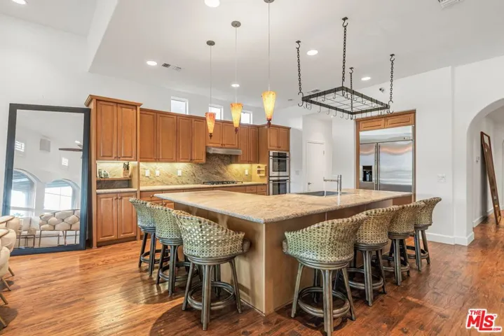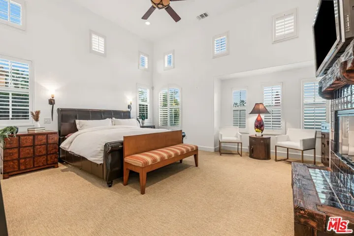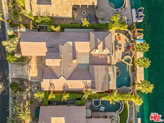 RARE OPPORTUNITY TO OWN ONE OF THE MOST SPECTACULAR AND LARGEST HOMES IN SANTO TOMAS!!! LUXURY LAKE FRONT DESERT LIVING AT ITS FINEST!!! Perfectly situated on a premium SOUTH-FACING lot in the highly desirable gated lake community of Santo Tomas, 64 Via Santo Tomas offers a unique south-facing backyard with plenty of luxurious amenities – infinity pool with a tanning ledge, hot tub, built-in BBQ station, fire pit, fireplace, and steps leading to the massive private dock. Located at the center of the community with unobstructed open water views of the nine acre lake, this home (one of only three) is perfectly situated directly across from the main entrance gate. The 3,350 sqft house boasts four bedrooms and four-and-a-half bathrooms (four are en-suite) with upgraded Kentucky Oak floors, security system, two car garage with plenty of storage space, two indoor fireplaces (one gas and one wood-burning), a bar area, and separation of bedrooms for added privacy. Granite countertops, stainless steel appliances, plenty of cabinets, and a walk-in pantry in the massive kitchen allow for easy entertaining. Two of the bedrooms can be used as an attached casita with a separate entrance door. Home comes fully furnished and has many upgrades – roof (2023), HVAC unit (2024), air conditioned garage, misters in the covered patio, and so much more. Low HOA dues includes a social and sports membership to the Mission Hills Country Club (pool, tennis, fitness, croquet, pickleball, restaurant). Enjoy desert living at its finest!