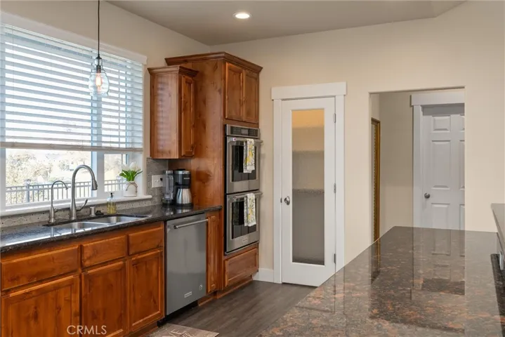 Built in 2020 by local builder Anderson Brothers Corp, this home is stylish, warm and welcoming, with an open floor plan, vaulted ceilings, and a cozy fireplace in the living room. The gourmet kitchen is designed for those who love to cook and entertain. It features custom tile backsplash, KitchenAid stainless-steel appliances, both electric & natural gas hookups, granite countertops, a large walk-in pantry, and double ovens. The open floor plan features a separate dining room area. From the living room, you can step outside onto your private back patio, a perfect outdoor space that creates an inviting atmosphere for relaxation or entertainment. It is landscaped with flowering perennials and mandarin, tangelo, and grapefruit trees. All three citrus trees produce fruit. There is also a front porch with a commanding view of the neighborhood and beautiful skylines. This property offers the ideal blend of privacy, views, and accessibility.