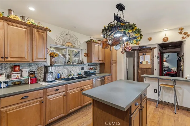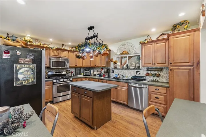Charming Crestline mountain cabin on an expansive lot! 1,560 sq ft. The Main house offers 3 bedrooms and 2 bathrooms, featuring vaulted wood ceilings, abundant natural light, an updated kitchen, and an updated bathroom, plus central air. Functional layout opens to inviting living and dining areas. The separate bonus game/playroom includes a half bathroom, two Murphy beds, a pool table, a small refrigerator, and a mini-split A/C—ideal for guests or flexible use. Long driveway with two entries provides ample parking and includes a 2-car garage. Multiple decks and patios to enjoy the serene forest setting. Offered fully furnished with appliances and furniture included. Located just over 1 mile from Lake Gregory. Ideal full-time home, weekend retreat, or investment opportunity.