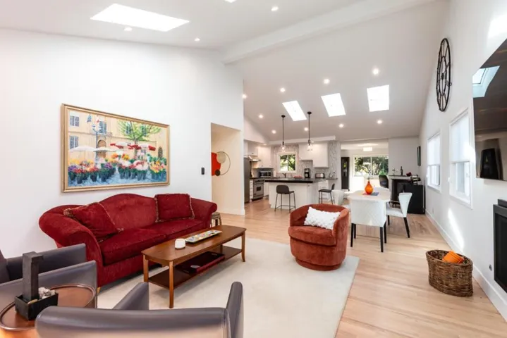 Stunning like-new Napa Valley home in the heart of the charming town of Yountville! Fully furnished and also available as monthly vacation rental at higher rate. Recently remodeled and landscaped with high-end finishes. This bright & cheerful home boasts an open floorplan, vaulted ceilings & skylights, hardwood floors, and central AC. The gourmet kitchen features a large soapstone center island, quartz counters & Viking range, open to a great room with 85″ smart TV & gas fireplace. Master suite w/ walk-in closet and luxurious shower, two other spacious bedrooms, plus office (or 4th bedroom). Custom closet organizers and window shades. Private fenced yard w/multiple entertaining / relaxing areas, including modern pergola w/adjustable louvered roof and firepit area. Romantic landscape lighting & string lights over firepit. Ideally located a short stroll down path to Bouchon Bakery and the wineries, restaurants & shops in Downtown Yountville, including world renowned French Laundry. Walk to Vineyard Park w/pickleball, tennis, and play area. Near Vine Trail for biking. Short drive to downtown Napa & Saint Helena. Two car attached garage (half of garage used for storage) plus plentiful parking on driveway and street. Rental permit RR-212