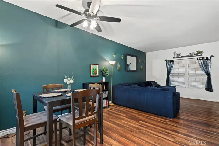 Welcome home to this beautifully maintained, move-in-ready two-story condo located in the desirable Chapman Parke community. Step inside to a light and airy living space featuring a spacious step-down living and dining area with elegant newer laminate wood flooring downstairs and bamboo flooring upstairs. The dining nook is enhanced by a ceiling fan and opens seamlessly to a private patio through a sliding glass door—ideal for outdoor dining or entertaining guests.