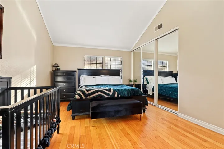 Upstairs, the primary bedroom offers vaulted ceilings, mirrored closet doors, a ceiling fan, and an en-suite bathroom with a shower. The secondary bedroom also features a ceiling fan, mirrored closet doors, and a charming window with neighborhood views. Both have Ikea closet systems. Plus an additional full hall bathroom.