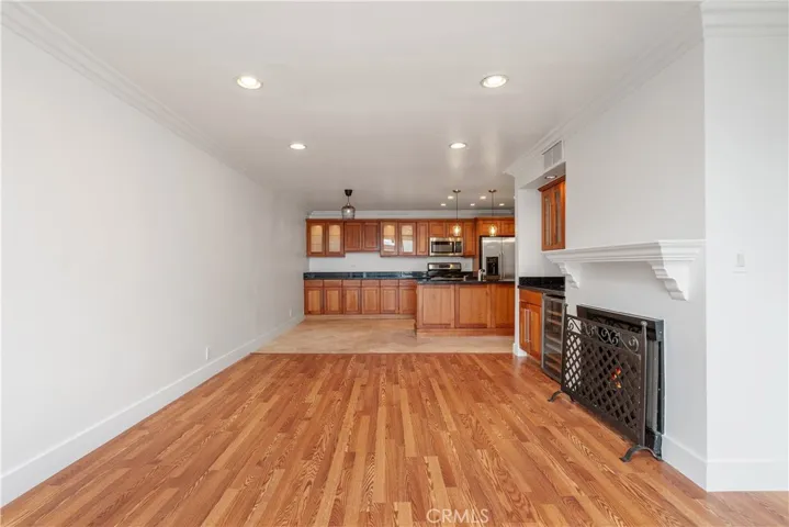 Welcome to your sun-drenched West Hollywood dream home! Perched on the top floor with coveted southwest exposure, this stunning penthouse retreat is flooded with beautiful natural light from dawn to dusk, creating the most inviting atmosphere you could imagine.Step inside and feel instantly at home. The open-concept living space welcomes you with a perfect blend of modern hardwood-style flooring and warm stone tones that flow seamlessly throughout. A contemporary fireplace adds cozy ambiance, while thoughtful touches like recessed lighting and a sleek stainless-steel wine refrigerator elevate everyday living to something truly special. The expansive living room opens gracefully to your private balcony overlooking the sparkling pool—imagine starting your mornings with coffee here, or unwinding as the sun sets over West Hollywood.The chef’s kitchen is where memories are made! Anchored by a generous island with gleaming granite countertops, it features top-quality stainless steel appliances and abundant cabinetry. Whether you’re preparing an intimate dinner or hosting a festive gathering with loved ones, this kitchen makes every occasion feel effortless and joyful.Your serene bedroom sanctuary offers both a spacious walk-in closet and an elegant sliding glass wardrobe—room for everything you love. The spa-inspired bathroom is your personal oasis, featuring a stylish vanity, a luxurious rain shower system, and invigorating body jets that transform your daily routine into pure relaxation.Nestled on the beautiful, tree-lined Kings Road, you’re perfectly positioned near the excitement of Melrose Avenue and Santa Monica Boulevard—world-class dining, shopping, and entertainment just moments away—yet your home feels like a peaceful escape from it all.This impeccably maintained community embraces you with resort-style amenities: a fully equipped fitness center, a sparkling pool for those perfect LA days, convenient on-site laundry, and secure gated parking with your own designated spot included. This is the rare find you’ve been searching for—a home that beautifully balances vibrant urban energy with tranquil, peaceful living.