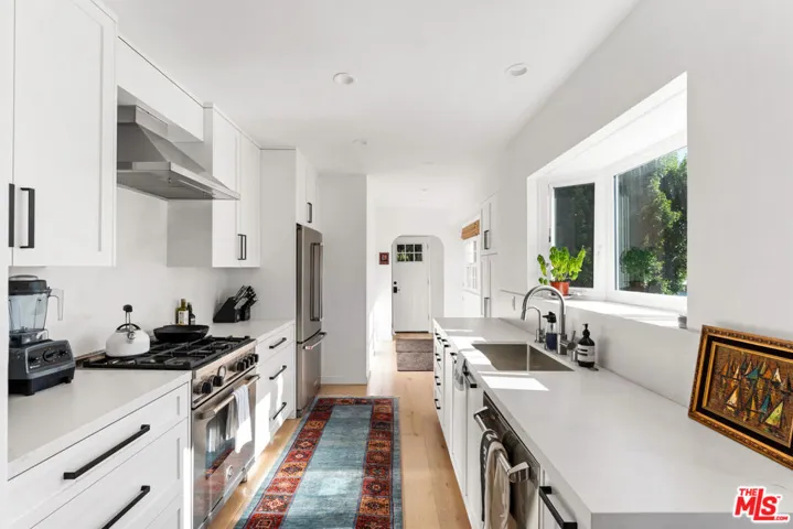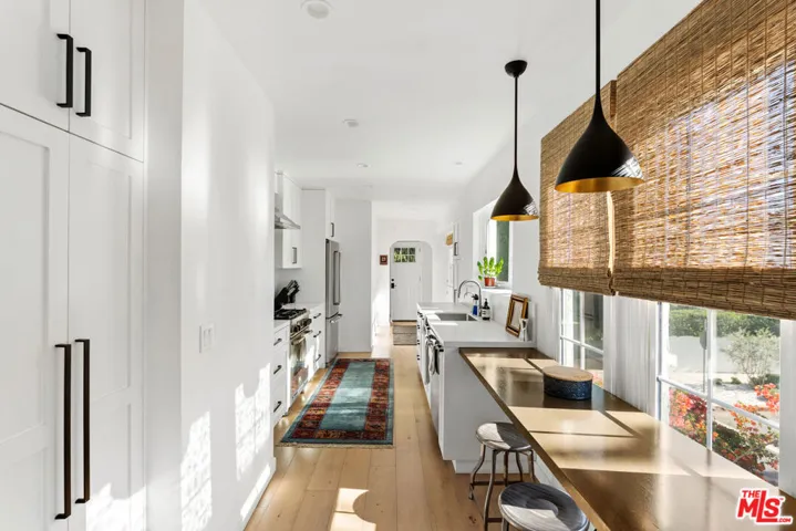 Beautifully designer-remodeled Spanish condo in prime West Hollywood, filled with natural light and timeless character. This two-bedroom, two-bath home offers interior laundry, original details, a private deck, and a garage. The open living and dining spaces are perfect for entertaining, while the updated bathrooms and custom kitchen provide both style and functionality with ample storage and counter space. Just moments from The Grove, Beverly Center, LACMA, Melrose shops, and top dining.