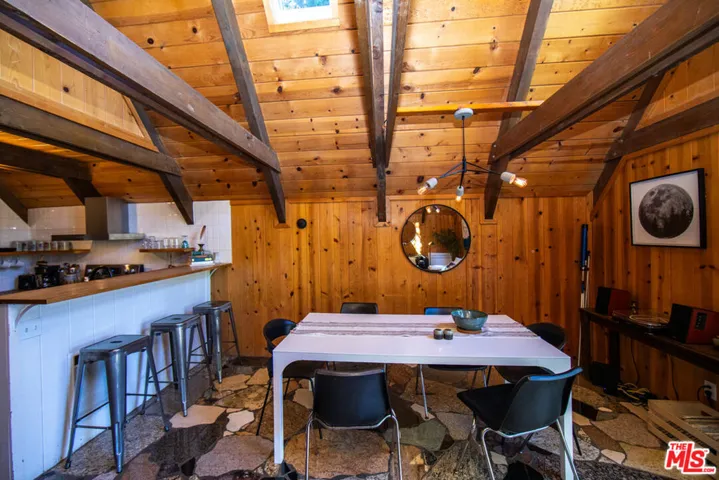 Perched high in the mountains this beautiful Pine Cove home is a rare gem. Good winter access via paved road and short driveway. This cozy rustic mountain A-Frame home offers 3 bedrooms-2 bathrooms with spacious tree top view deck. Pristine lot is just steps from the national forest. Features include hardwood & artistic marble floors, wood panel high beam ceiling, open countertop kitchen with stainless steel appliances, light & bright skylight living room with floor to ceiling windows, W/D unit inside. The Mini-Splits provide controlled heating/AC in all rooms for year round comfort. There is ample space for parking close to home entry. The top floor loft is cozy and special. This escape retreat home is absolutely perfect for all year-round mountain lifestyle.