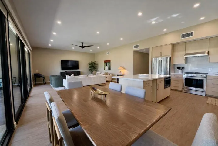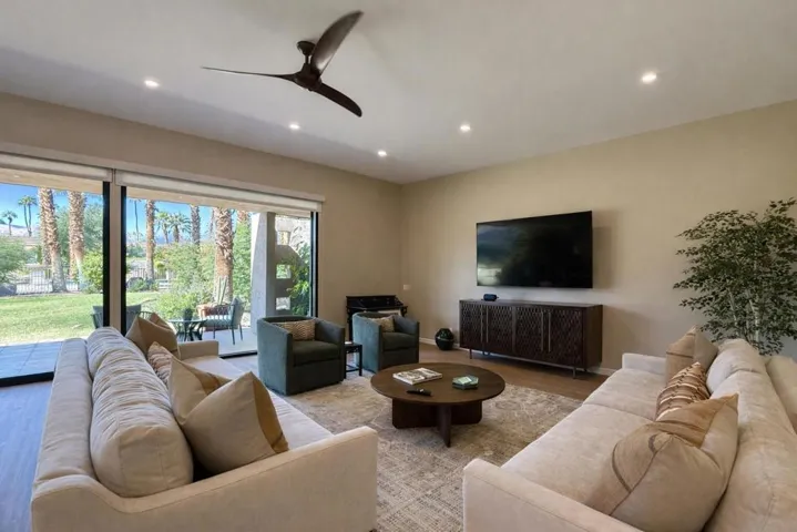 Panoramic mountain views and resort-style surroundings define this fully remodeled, turnkey furnished seasonal lease in Indian Wells Country Club. Beautiful landscaping, a sparkling pool, and sweeping southern and western mountain views frame the open-concept living, dining, and kitchen spaces, highlighted by floor-to-ceiling windows and a large sliding glass door that seamlessly blend indoor and outdoor living.The beautifully remodeled kitchen is the heart of the home, featuring new custom cabinetry with abundant storage, a large quartz center island ideal for gathering and entertaining, and new appliances. The open layout flows effortlessly into the dining and living areas, creating a bright, inviting atmosphere.The west-facing backyard captures stunning sunset views and is located just steps from the community pool, offering effortless resort-style living.The home features two spacious primary bedroom suites, each with an ensuite bath and generous closet space. A bonus room provides added flexibility and can serve as a den, home office, or additional lounge space. Seasonal availability and pricing:October 2026: $5,500 November 2026: $5,500 December 2026: $6,000 January 2026: $6,000. Two-month minimum stay required.