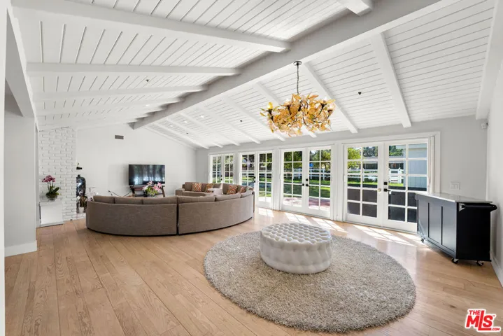 Single Story Hidden Hills Equestrian Estate. Bright and open 4 bd/3.5 bath ranch home is sited on a beautiful 1.1 usable acre corner. Featuring light wood floors throughout, spacious informal living room with vaulted beam ceilings, cozy den and chef’s kitchen with stainless appliances & bright breakfast niche. Extraordinary riding arena. Large detached garage w/ 4 sizable removable stalls plus 3 temporary stalls. Large private grounds features sprawling lawns, mature shade trees, pool w/ spa. Just a short walk leads to community center, gym and weekly farmers market. Hidden Hills, a one of kind lifestyle in Los Angeles.