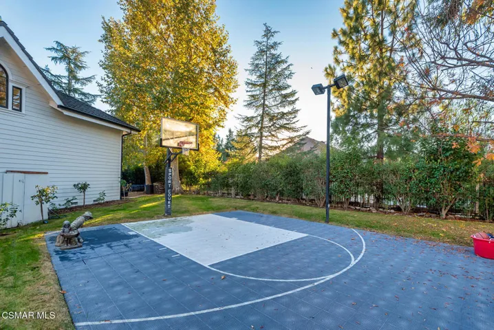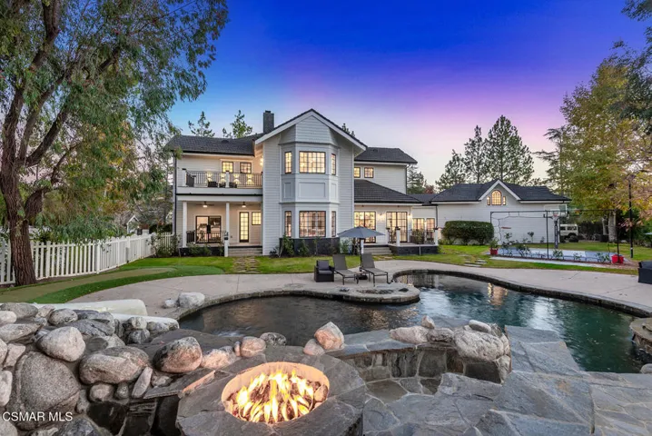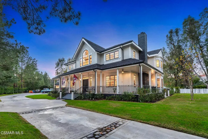 The ultimate Agoura masterpiece estate! An awe inspiring privately gated industrial farmhouse completely reimagined using the very finest finishes throughout. Ideally located on over 1.5 acres of usable grounds is this sensational 7122 square foot beauty with every amenity expected and desired for a home of this caliber. The dramatic two story entry opens to interior features including 5 beds, 7 baths, separate theater with attached bonus/game room, oversized ”mud room” and much more. Upstairs there is a dream primary suite with two walk in closets, kitchenette, fireplace, balcony and a Four Seasons quality bathroom. There are three additional oversized secondary bedrooms upstairs-all en-suite. The kitchen is extraordinary boasting top of the line cabinets, quartzite counters and a large breakfast room. The family room is graced with a fireplace and an abundance of French doors and windows overlooking the rear grounds. The resort quality backyard is superb! There is a custom pool (with waterfall and slide) and spa, covered pavilion, outdoor fireplace, barbecue center, basketball court, putting green and manicured lawns. This property is special with the potential development opportunity for two ADU’s. Other amenities include a smart home system, wrap around porch, newer roof, plumbing, lighting and much more! An absolutely fantastic offering!