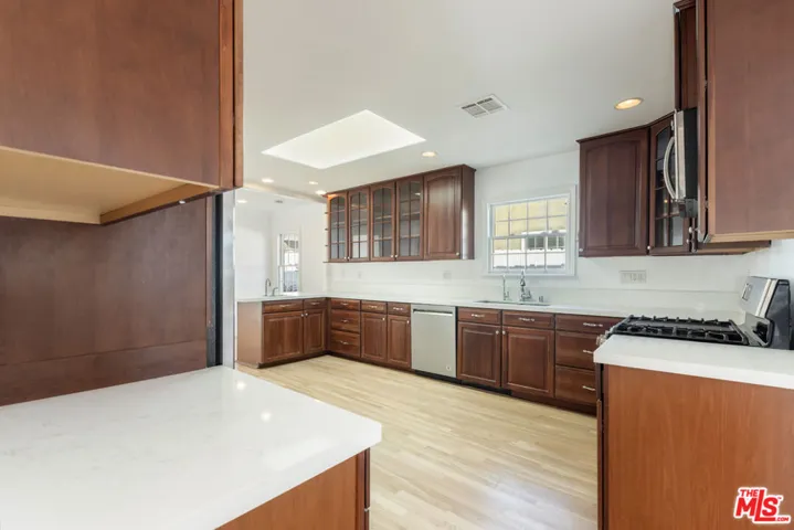 Discover this beautifully renovated single-family home nestled within the heart of historic Sunset Square. This private retreat, shielded by lush hedges and a gated entrance, offers a tranquil escape. The home’s interior has been thoughtfully updated with fresh paint, refinished hardwood floors, and two stunning tiled fireplaces. The spacious, open-concept floor plan is bathed in natural light, featuring high ceilings and ample room for entertaining. The modern kitchen is a chef’s dream, boasting custom cabinetry, stainless steel appliances, and new, sleek Quartz countertops. The luxurious primary suite is a private sanctuary, complete with an en-suite bathroom featuring dual sinks, a walk-in shower, and a soothing spa tub. Two additional generously sized bedrooms and a beautifully tiled second bathroom with dual sinks and a large walk-in shower provide ample space for family and guests. The garage/studio offers versatile space, perfect for a home office or creative hobby. The property also includes a serene outdoor area featuring a grassy front and backyard, a new fence, and a fragrant rose garden.