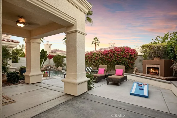 Fantastic opportunity in one of La Quinta’s most sought after neighborhoods! Ideally positioned in Puerta Azul’s most desired location, this beautiful turnkey home features a private spa/pool in the spacious and private south-facing backyard with outdoor fireplace and mountain views. Inside, one will enjoy the well thought-out floorplan with high ceilings throughout, an inviting great room with fireplace which opens seamlessly to the backyard for effortless entertaining with family and friends as well as a powder bathroom located off of the entry. In addition, there are two primary suites with each having their own bathroom and one which opens to a beautiful, secluded patio area perfect for morning coffee. There is also a one car garage with direct home access. Puerta Azul is a gated, exceptionally well maintained community with reasonable HOA dues featuring two resort-style pools, tennis court, bocce ball area as well as a fantastic clubhouse with a beautiful fitness center. Furthermore, Puerta Azul is one of the very few communities in the city of La Quinta which allows for short-term rentals with no nightly minimum, allowing homeowners to capitalize on its exceptional location. Puerta Azul is located just minutes to world-class golf and tournaments at PGA West, fine dining and shopping at Old Town La Quinta, the Empire Polo Club where the Coachella and Stagecoach festivals are held in addition to some of the most prestigious golf clubs in the entire Coachella Valley. This home has been a successful short term rental with future bookings scheduled that can be seamlessly transferred to the new homeowner. Whether you are looking for a fully furnished seasonal desert retreat, investment opportunity or perhaps both, this exceptional property offers it all!