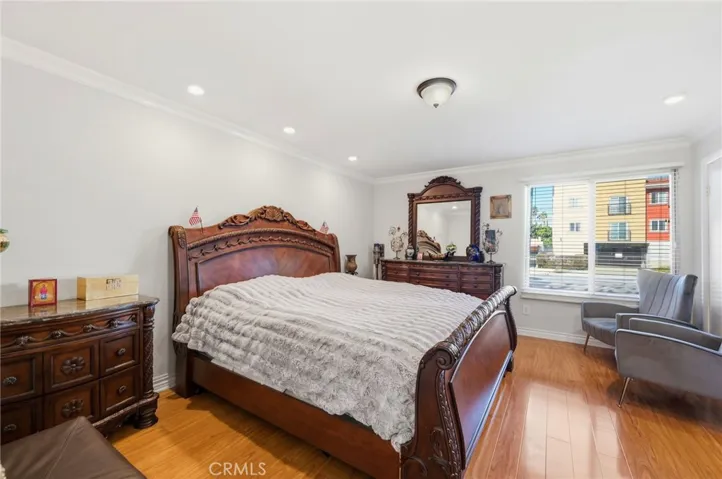 Beautifully maintained first-floor, front-unit 2-bedroom condo in the heart of Van Nuys. This bright, move-in-ready home features an open-concept layout with a gas fireplace and a private balcony. The updated kitchen offers granite countertops, modern cabinetry, and sleek fixtures, flowing seamlessly into the dining and living areas. Enjoy laminate flooring, crown and base moldings, recessed lighting, and updated window blinds throughout. The spacious primary suite includes a walk-in closet and a refreshed en-suite bath with granite counters and tiled floors. The oversized second bedroom offers generous closet space, and both bathrooms feature clean, modern finishes. Additional highlights include in-unit laundry hookups, extra storage, a private one-car garage, and convenient guest parking nearby. located in a well-kept community with a pool, gym, recreation room, and lush landscaping, this quiet building offers comfort, convenience, and style in a prime location.