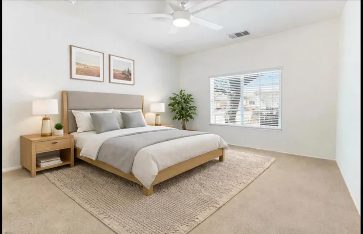 Welcome to Mountain View Country Estates in Desert Hot Springs. This 3-bedroom, 2-bath home offers 1,835 sq ft of light-filled living space and is offered vacant, with virtual staging to help buyers envision its potential and layout.Enjoy golf course views from the backyard, providing a peaceful outdoor setting, along with scenic mountain views from the front of the home. The open surroundings and green fairways create a pleasant and desirable backdrop.Inside, the home features open living areas, generous room sizes, and good natural light throughout, offering flexibility for a primary residence, seasonal home, or investment opportunity.Mountain View Country Estates is a mixed all-age community with a designated 55+ section, offering a variety of amenities including three pools total–two all-age pools and a separate pool for the 55+ section–as well as tennis courts, a basketball court, and a playground within the development. Conveniently located near shopping, dining, and major routes, and just minutes from Downtown Palm Springs, the Palm Springs International Airport, and area casinos, this property offers a great opportunity to own a golf course-view home in Desert Hot Springs.