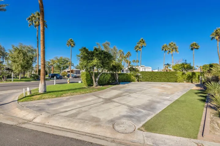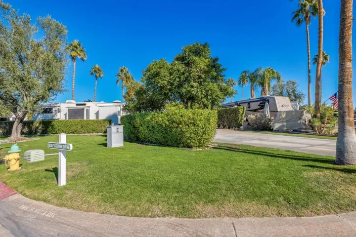 A newly available corner property priced at $89,000. This highly desirable lot is situated in one of the resort’s most popular and convenient locations, offering exceptional proximity to key amenities. Residents will appreciate being mere steps away from both the ES clubhouse and the Golf Starter Shack.The property offers charming and mature landscaping, which includes three distinct fruit trees: tangerine, lemon, and orange, adding a unique and vibrant touch. The surrounding grounds are meticulously maintained, featuring beautifully manicured shrubbery and established plantings that contribute to the lot’s overall picturesque appeal. Accent lighting further enhances the ambiance during evening hours. Complete with professionally installed artificial turf and expanded concrete areas, designed for low maintenance and maximized functional space.