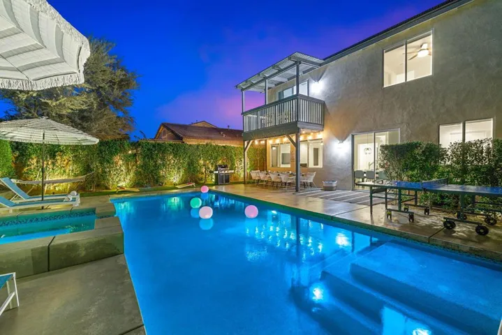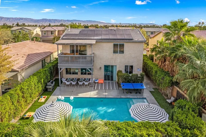 Priced to sell and being offered turn-key furnished! Discover an exceptional investment opportunity in the hidden gem of Anastacia. This fully remodeled property is ideally located within walking distance of the Polo Ground, home of Coachella, and Stagecoach Festival–offering unparalleled convenience and proximity. This home features four beautifully appointed bedrooms and three bathrooms, providing ample space and comfort. A two-car garage adds practicality, while the fully paid-off solar system with a Tesla battery backup ensures energy efficiency and cost savings. Recent upgrades include Jandy pool equipment, as well as refreshed pebble and tile finishes in the pool and spa, creating a luxurious and inviting outdoor space. Inside, you’ll find elegant laminate flooring that adds a modern touch throughout the home. A private balcony offers a serene retreat, and the front and rear yards are perfect for entertaining guests or simply enjoying outdoor living. This property is not only an entertainer’s dream but also a fantastic opportunity for high-yielding short-term rental income for decades to come. Don’t miss out on this unique investment–contact us today to schedule your private showing and explore all the remarkable details this home has to offer.