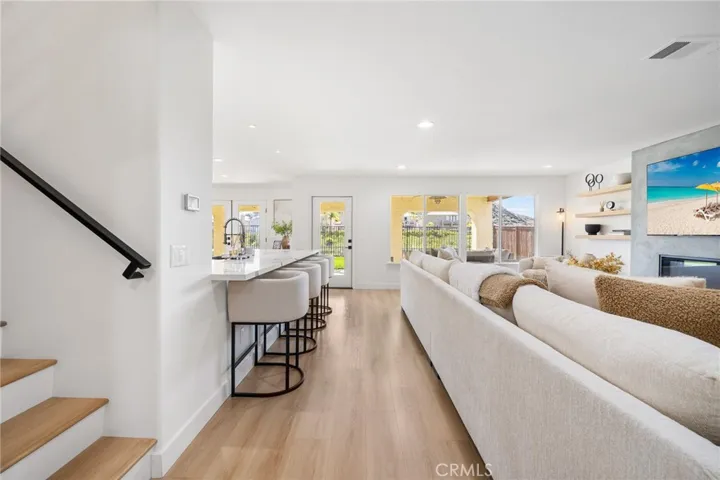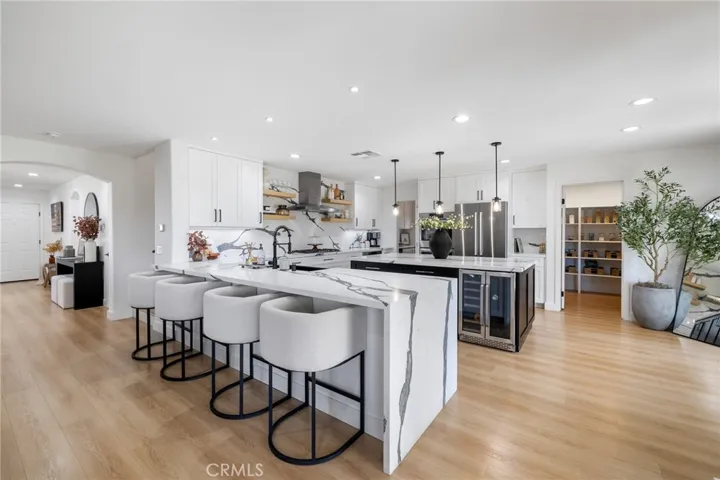 The chef’s kitchen is a standout, featuring a massive pantry, a sleek microwave drawer, oversized island with wine fridge, updated appliances, and an open design you’ll love. The living room is warm and inviting, highlighted by an updated fireplace and floating shelving that serves as a beautiful focal point.