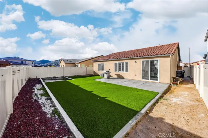 Better Than New Construction – Move-In Ready & No HOA! Welcome to this beautifully upgraded, completed newer-construction home in Winchester, offering all the benefits of a brand-new build—without the wait. Unlike buying from a builder, this home is already finished, landscaped, and thoughtfully upgraded, so you can move right in and start enjoying it from day one. Best of all, there’s no HOA. This highly desirable single-story floor plan features a private primary suite separated from the two secondary bedrooms, providing the perfect layout for privacy, guests, or a home office setup. Inside, you’ll find luxury vinyl plank flooring throughout, modern Whirlpool appliances, and a bright, open living space designed for today’s lifestyle. The garage is EV-ready, and the home includes 10 leased solar panels to help reduce energy costs. Step outside to a fully finished yard—another big upgrade over new construction. The front and rear landscaping is complete, featuring low-maintenance artificial turf, an inviting backyard fire-pit area, and space perfect for relaxing or entertaining. An extended driveway provides extra parking, and seamless rain gutters add both function and curb appeal.