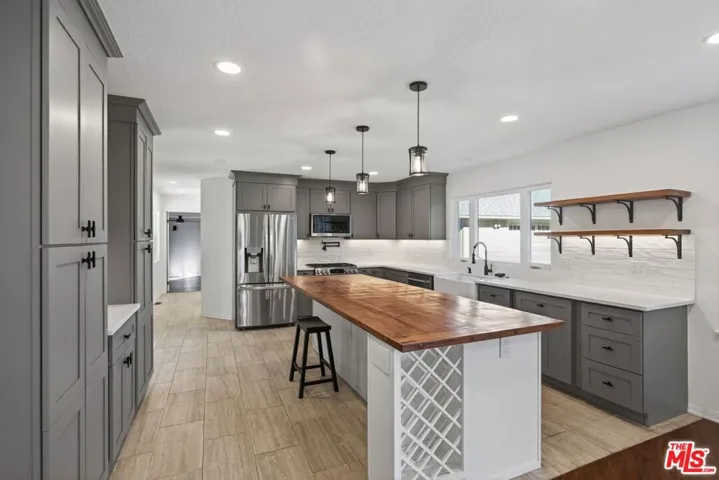 Located in Ojai’s highly sought-after Arbolada neighborhood, this private ranch-style residence offers space, comfort, and flexibility on an expansive 0.75-acre lot. The single-level home spans approximately 2,563 square feet and features 4 bedrooms and 3 bathrooms with wood flooring throughout. The updated kitchen is highlighted by a large custom reclaimed-wood island and opens seamlessly to the main living areas, ideal for everyday living and entertaining. Covered patios off both the living room and kitchen extend the living space outdoors and provide a natural connection to the surrounding grounds. The primary suite is generously sized and features vaulted ceilings, direct access to the backyard, and a spacious bathroom with soaking tub, double vanity, makeup vanity, water closet, separate shower, and walk-in closet. Three additional bedrooms and two bathrooms offer flexibility for a variety of living arrangements. The fourth bedroom includes a kitchenette and may function well as guest quarters or a private retreat. The outdoor setting is designed for enjoyment and privacy, featuring a pool, separate spa, sports court, grassy backyard with bistro lighting, mature trees, and space to spread out and relax. Additional amenities include a detached two-car garage with carport, room for RV parking, laundry room, and a detached utility building suitable for artists studio or flexible use. A rare lease opportunity in one of Ojai’s most desirable neighborhoods, offering privacy, space, and convenient access to the town, bike path and trails.