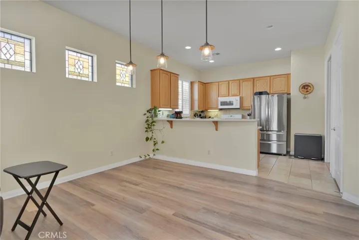 The oversized dining room features glass doors that open to a covered patio and a beautifully manicured backyard with vinyl fencing, perfect for summer BBQs and outdoor gatherings. Shutters throughout the home add timeless appeal, while the fully finished garage with epoxy floors provides both durability and style.