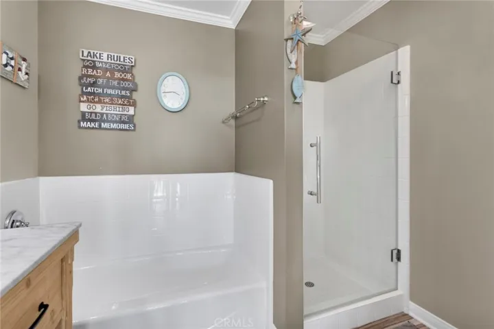 This home will WOW you from the moment you arrive! Arriving here you will love the corner lot with a cement pad for RV/trailer parking, located just a few steps from the lake and fishing area. The driveway & walkway was recently poured with newer cement to give a fresh feel to the exterior. Entering the home you are greeted by the most beautiful staircase adding to the WOW factor. Plenty of space for the whole family with a formal living and dining room, spacious kitchen and breakfast nook, and cozy family room with a beautiful fireplace perfect for those chilly nights. Down stairs there is a guest room and full bathroom and laundry room that leads to the garage. Up stairs are the remainder of the guest bed/bathrooms and the primary suite that will make you feel like you’re on vacation every day with beautiful views from the balcony without the neighbors blocking it! Headed to the back yard there is an enclosed patio with a spa, the perfect mix of indoor/outdoor living space. The backyard feels very private and spacious with mature landscaping and a storage shed. There have been so many upgrades to this home since the current owners purchased it, including replacing the attic insulation, all new paint, flooring, and light fixtures throughout, the kitchen & every bathroom has been remodeled, the primary bedroom closet was custom built and new window screens. There is gas and electric hook ups for the dryer & spa, while the stove is natural gas!