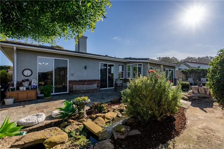 Nestled in the highly sought-after Monarch Grove neighborhood of Los Osos, this beautifully updated 3-bedroom, 2-bathroom home offers an expansive layout larger than many surrounding properties. Thoughtfully designed and many custom tasteful upgrades, the home features high-end flooring throughout, a stylishly custom kitchen, newer efficient fireplace and elegant detailed wall finishes, built-in cabinets and graceful arched hallways. The spacious primary suite is a true retreat, highlighted by a large expanded oversized bedroom, two closets and one oversized walk-in closet, and a luxurious bathroom complete with a relaxing soaking bathtub. Every detail has been curated to create a comfortable yet refined living experience. Step outside to discover a serene backyard oasis with peek-a-boo views of the bay and iconic Morro Rock, unwind beside the two waterfalls and the tranquil koi pond, and take in the beauty of mature trees and lush, established landscaping. This private outdoor space with expansive tiled hardscape is ideal for relaxation, entertaining, or simply soaking in the peaceful coastal atmosphere, morning coffee and or evening entertainment with friends and family. Warm, inviting, and perfectly situated, this exceptional home captures the essence of Los Osos living and peace of mind with a recent roof replacement and termite repairs.